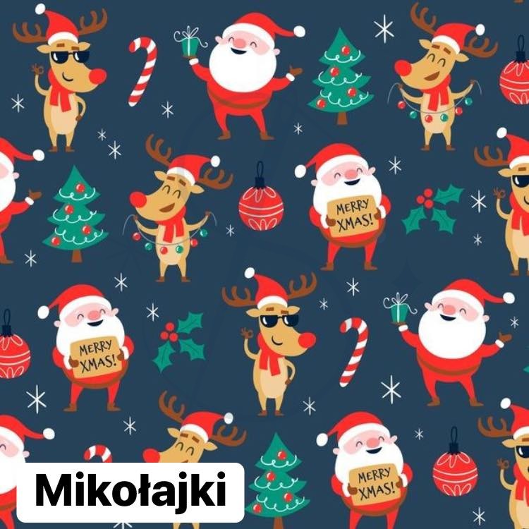 C1 Mikołajki na granacie- Dresówka pętelka druk cyfrowy