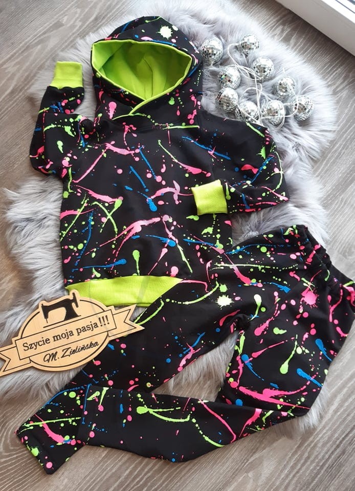 Dresówka pętelka 240 plamki fluo na czarnym Dw240