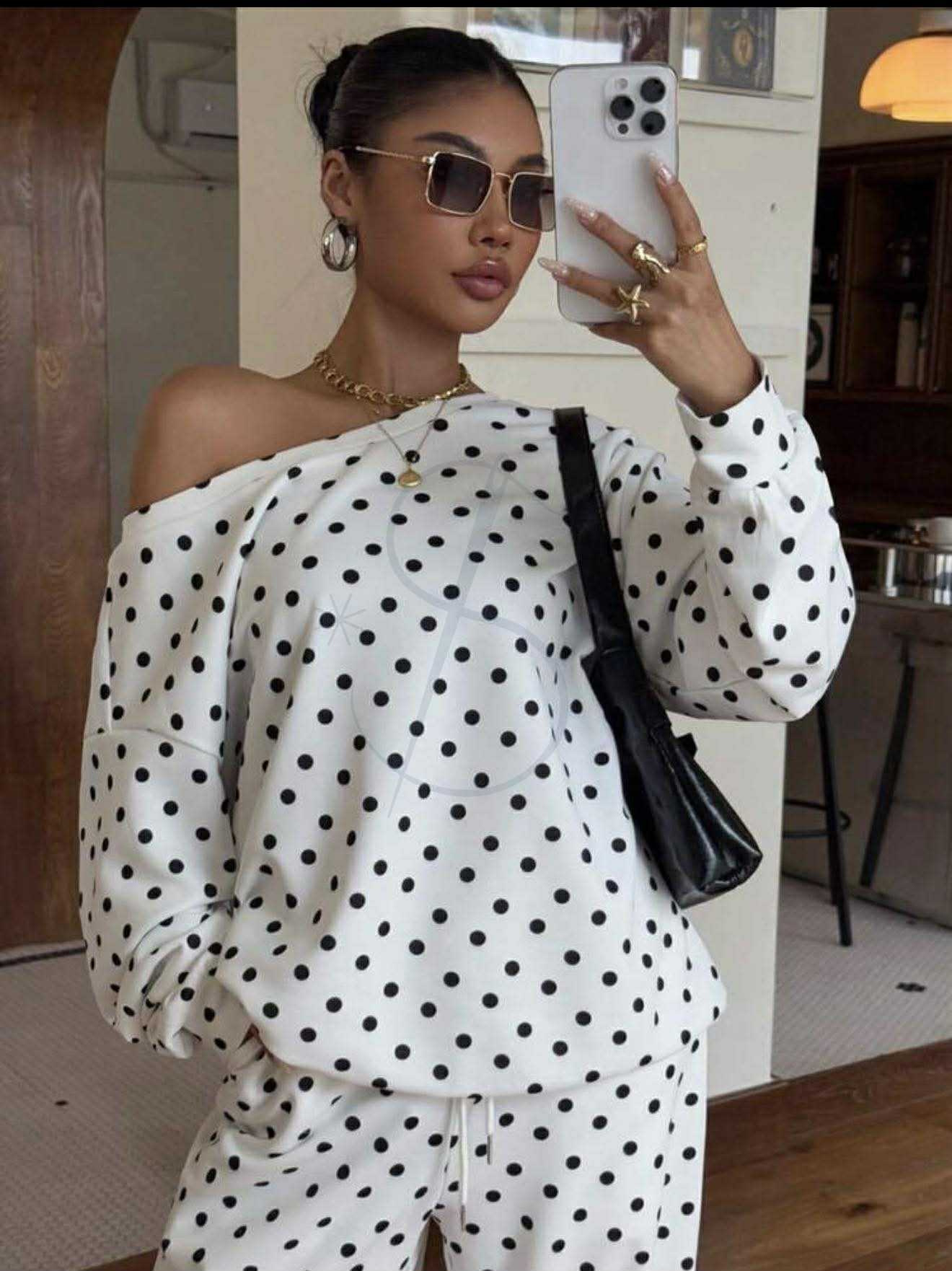 Dresówka pętelka biała czarne kropki - Dw240