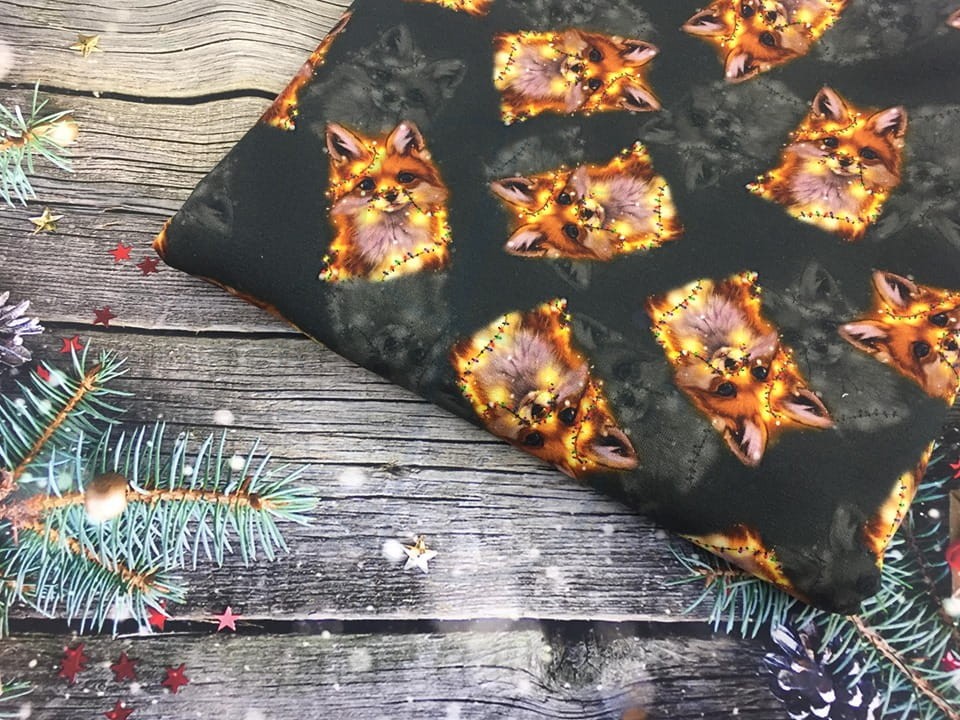 Dresówka pętelka druk cyfrowy - świąteczne liski