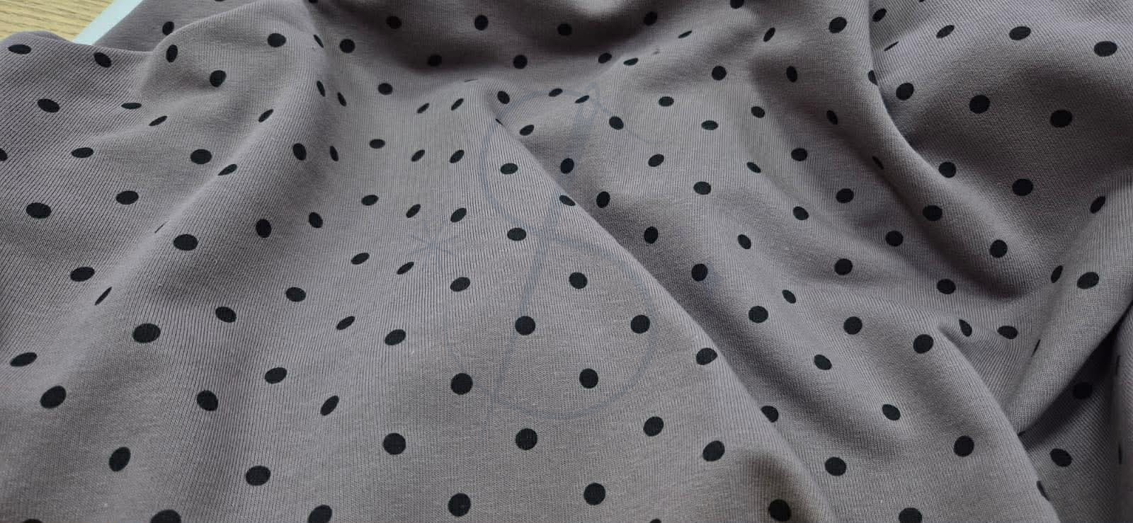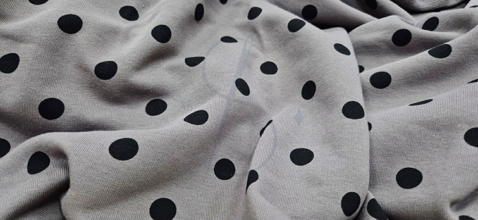 Dresówka pętelka stalowa czarne kropki - Dw240