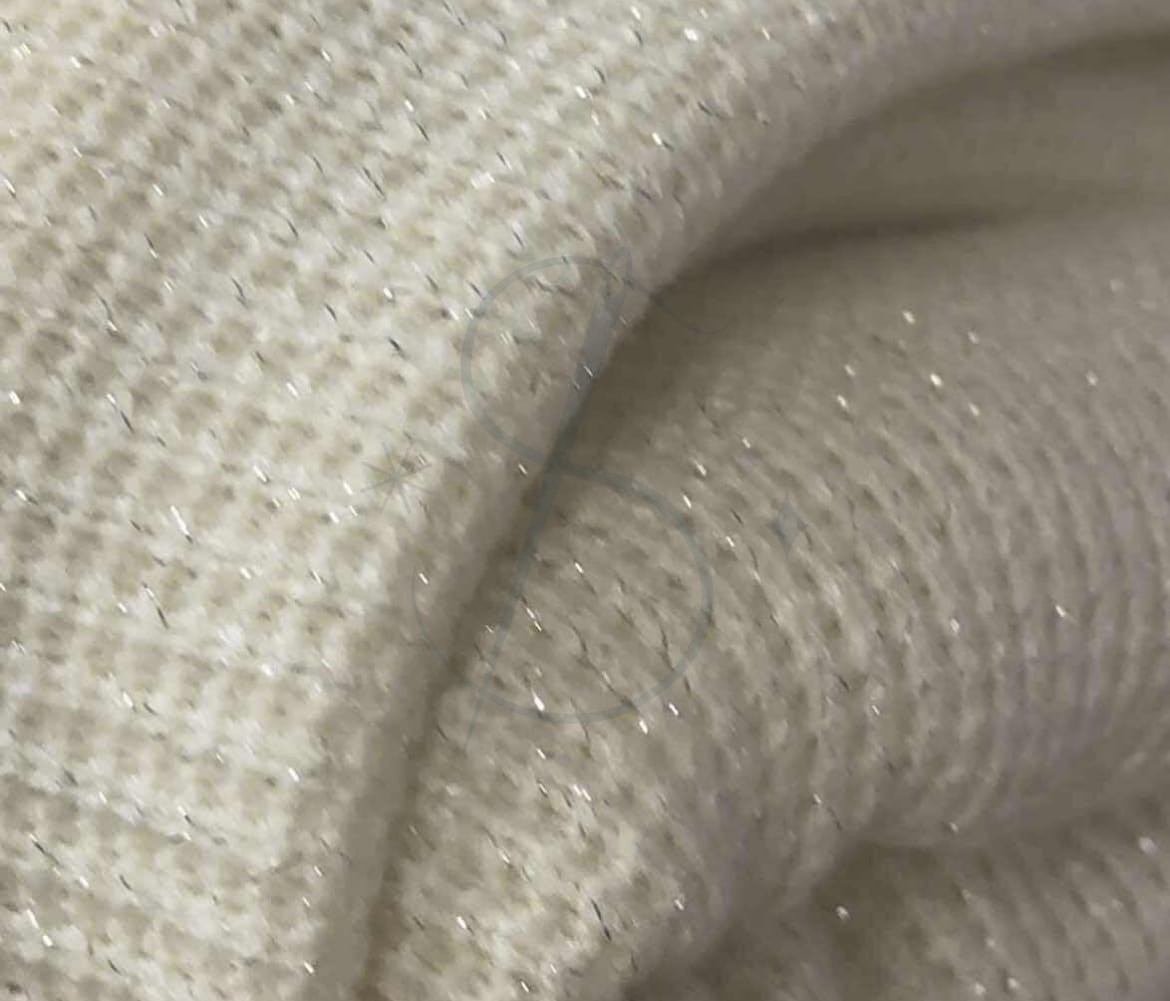 Dzianina swetrowa Nell , sweterek 320g ecru srebrna nitka