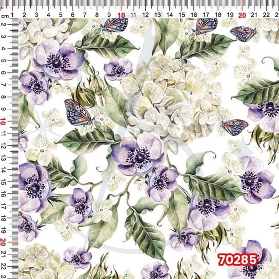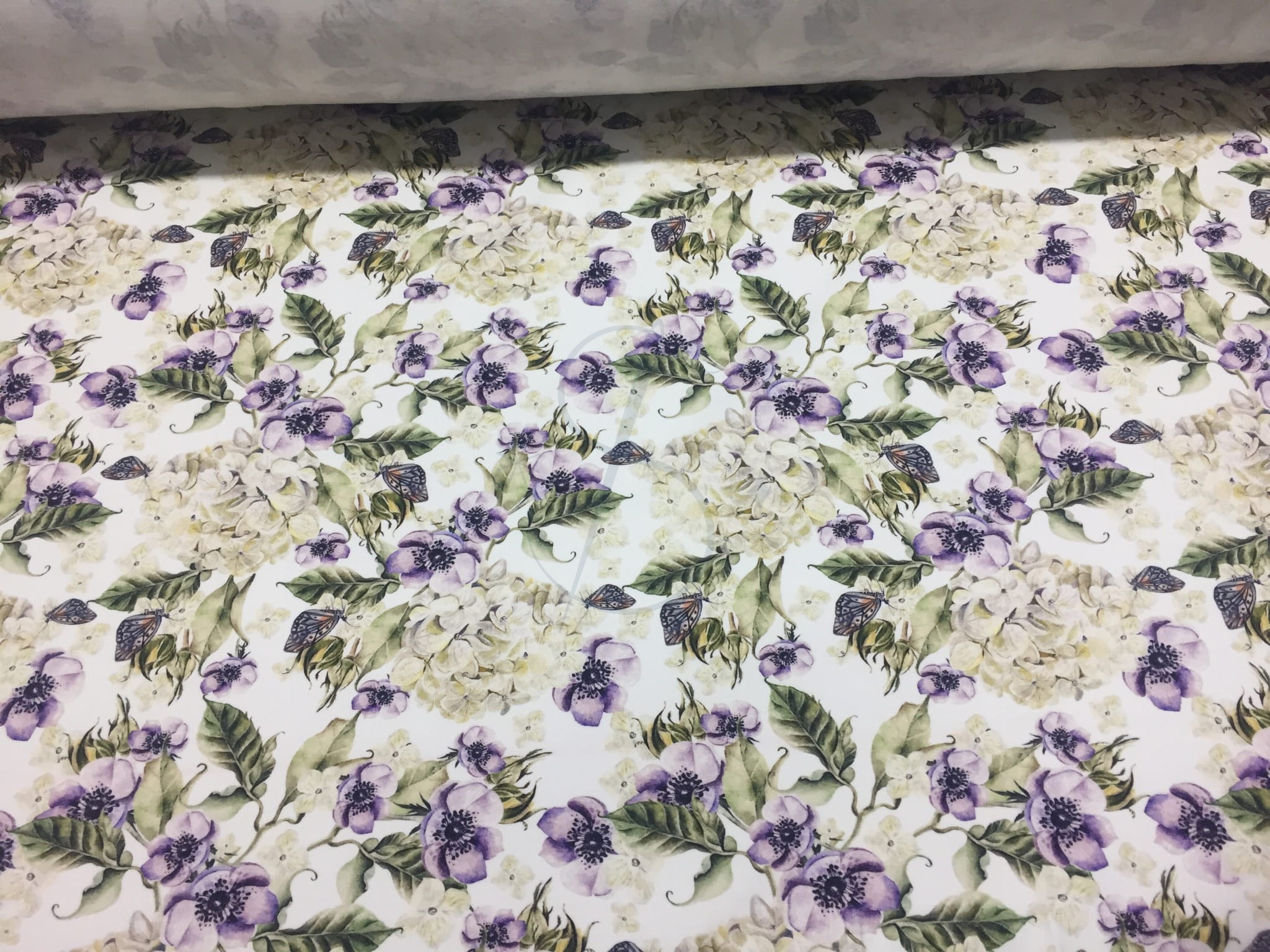 Fioletowe kwiaty i hortensje Jersey druk cyfrowy