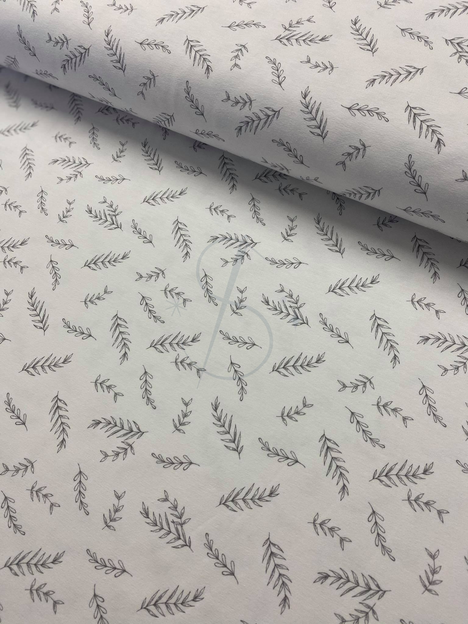 Gałązki na bieli - Jersey bawełniany druk Jh2 ROMANTIC