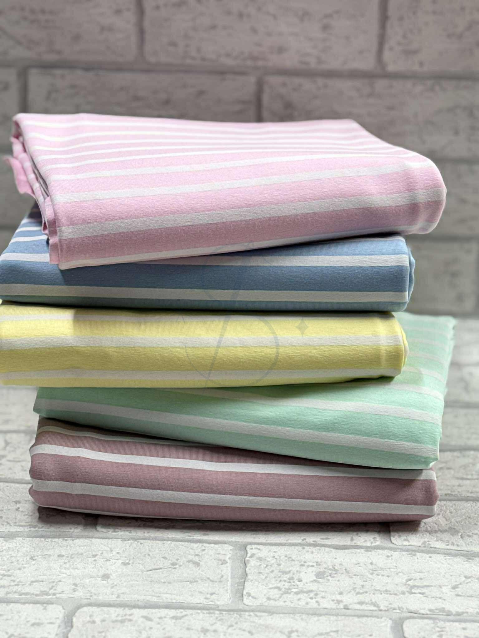 Miękki, elastyczny i przyjemny w dotyku jersey bawełniany z nadrukiem w ponadczasowe paski. Idealny na całoroczne projekty krawieckie — od wygodnych bluzek i sukienek, przez legginsy, body, aż po ubranka dziecięce.
