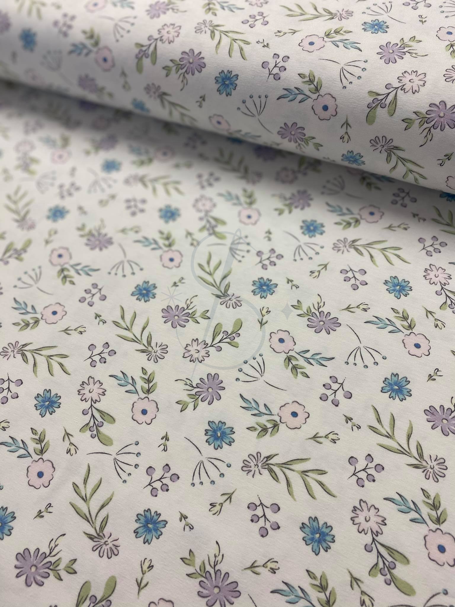 Kwiatuszki jednorożca na bieli - Jersey bawełniany druk Jh2 ROMANTIC