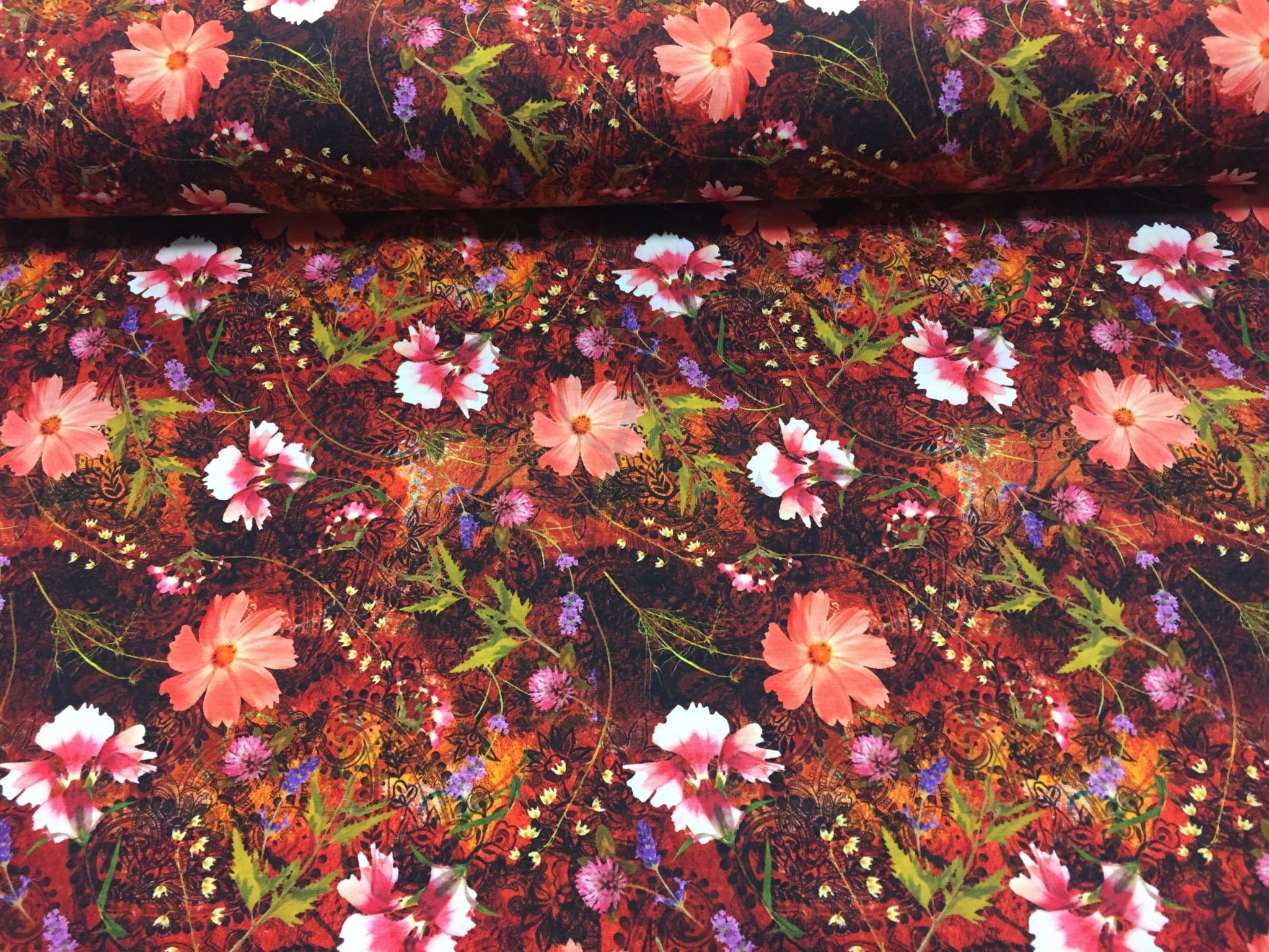 Kwiaty rude - Jersey druk cyfrowy Jh2