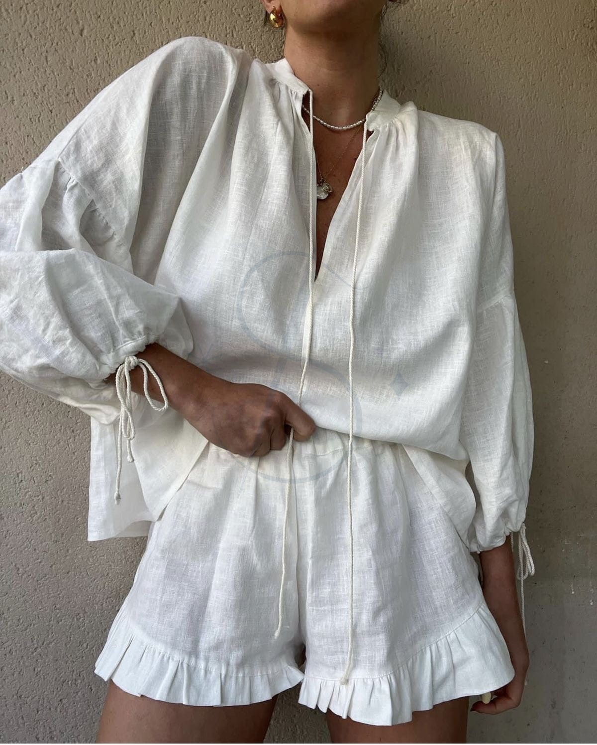 Len z bawełną ecru - tkanina odzieżowa