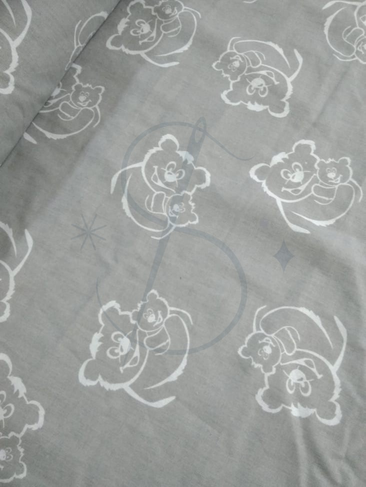 Miś na szarym - tkanina bawełniana (1)