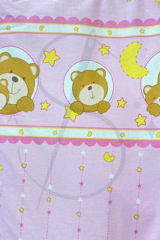 Miś w okienku rózowy - tkanina bawełniana