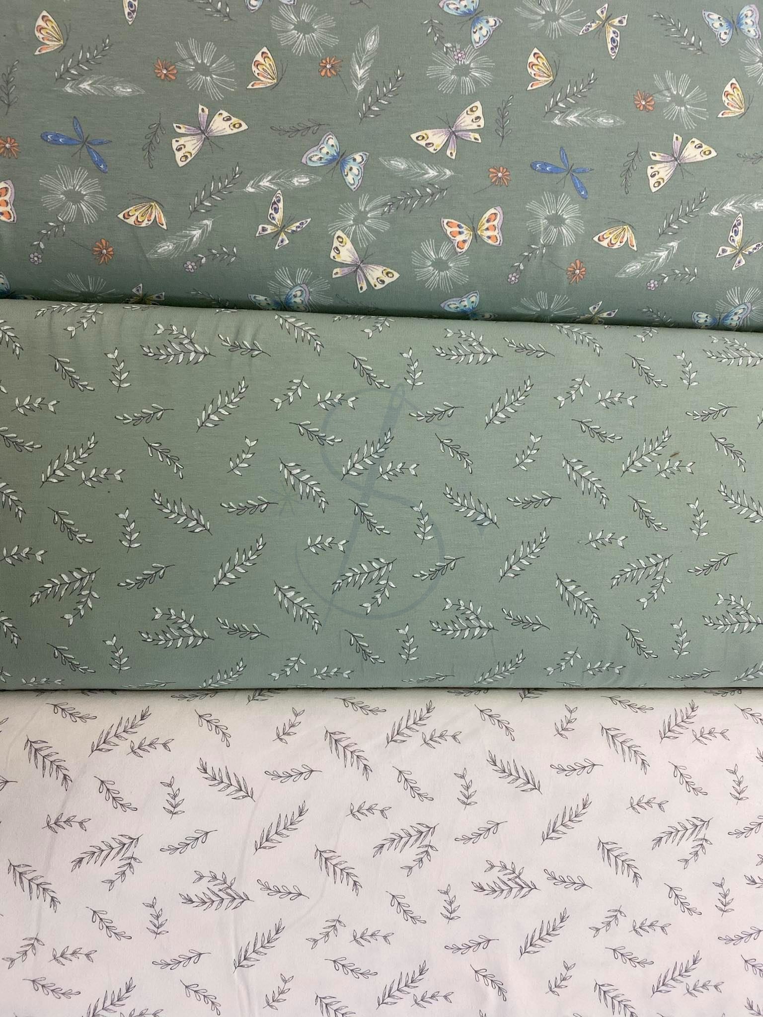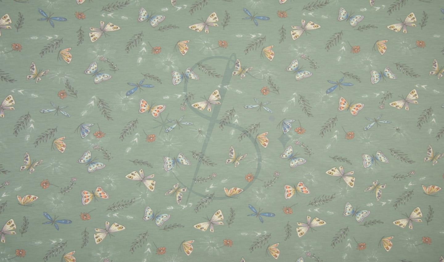 Motylki brudna mięta - Jersey bawełniany druk Jh2 ROMANTIC