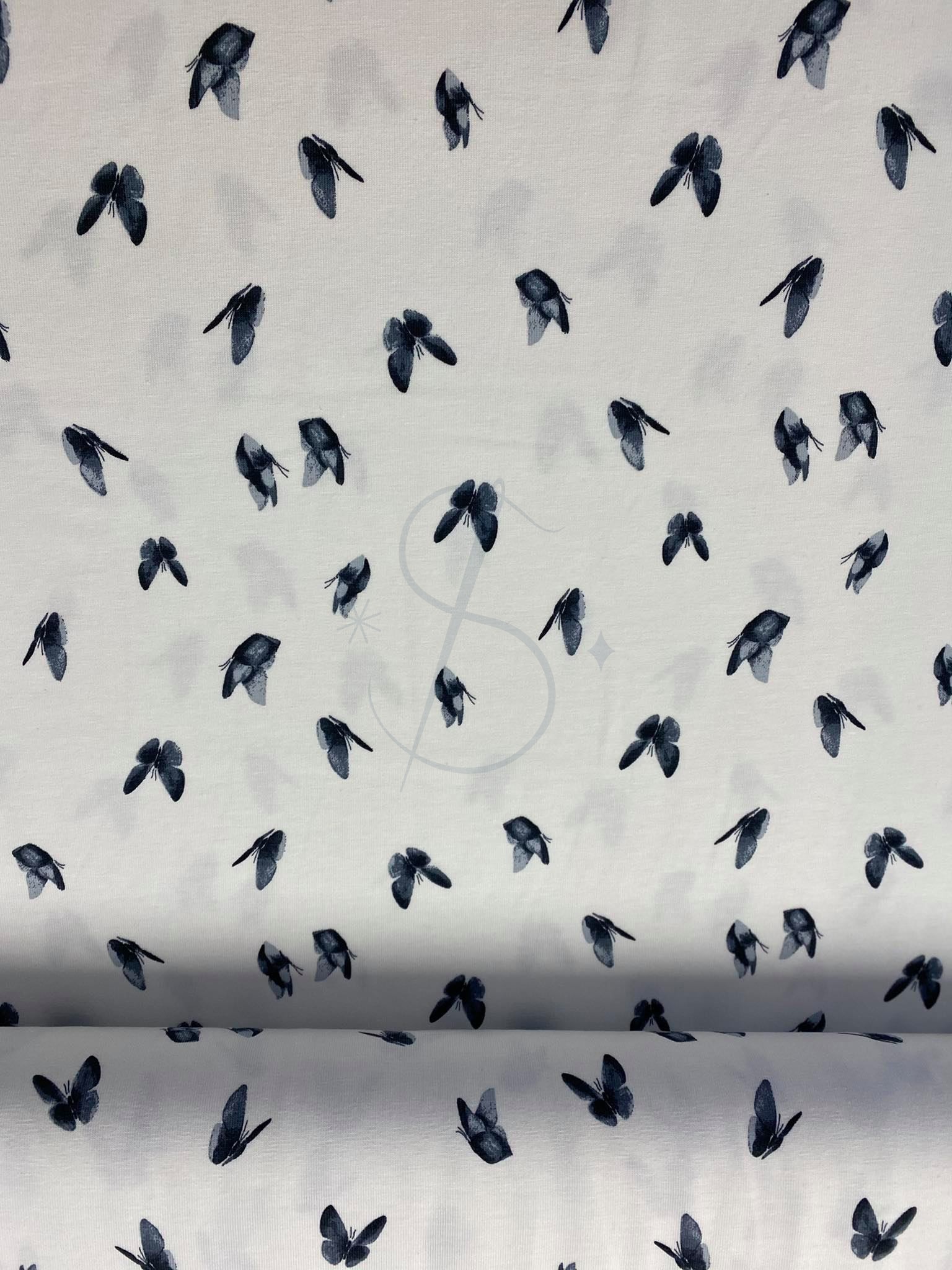 Motylki jeans - Jersey bawełniany druk Jh2