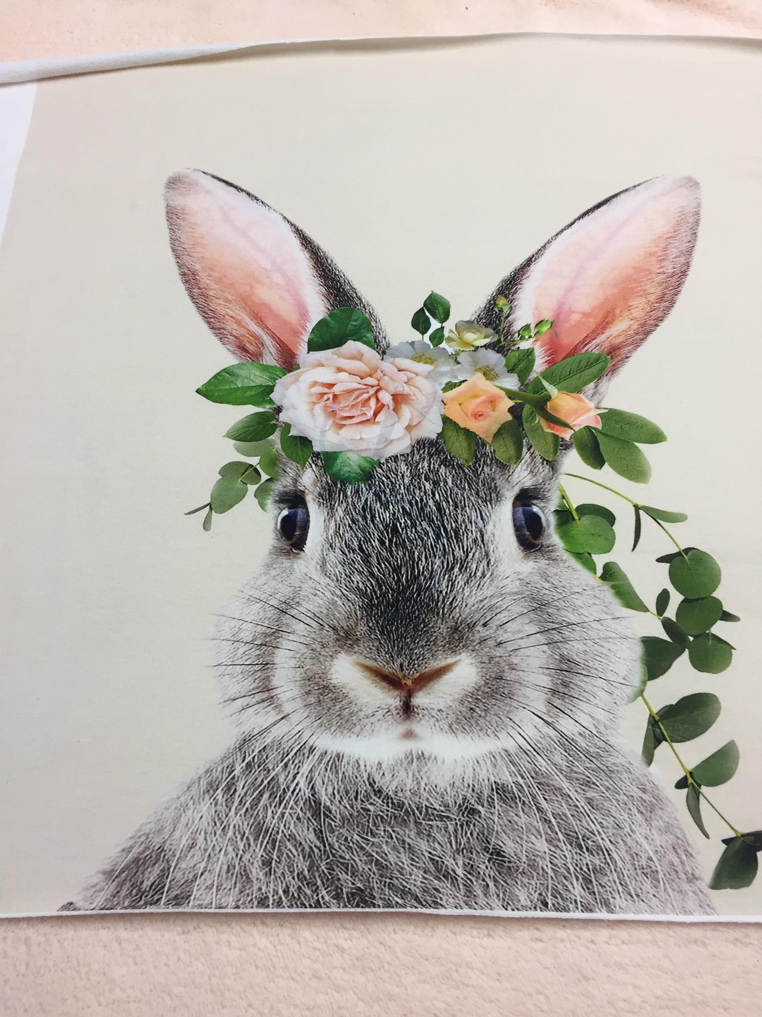 P3 Szary Królik w wianku na beżu panel dresowy L 57/62