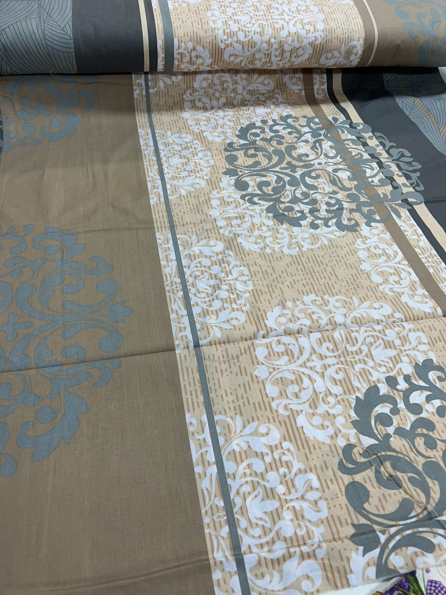 Pasy i rozety szaro-bezowe - tkanina bawełniana 220 B220