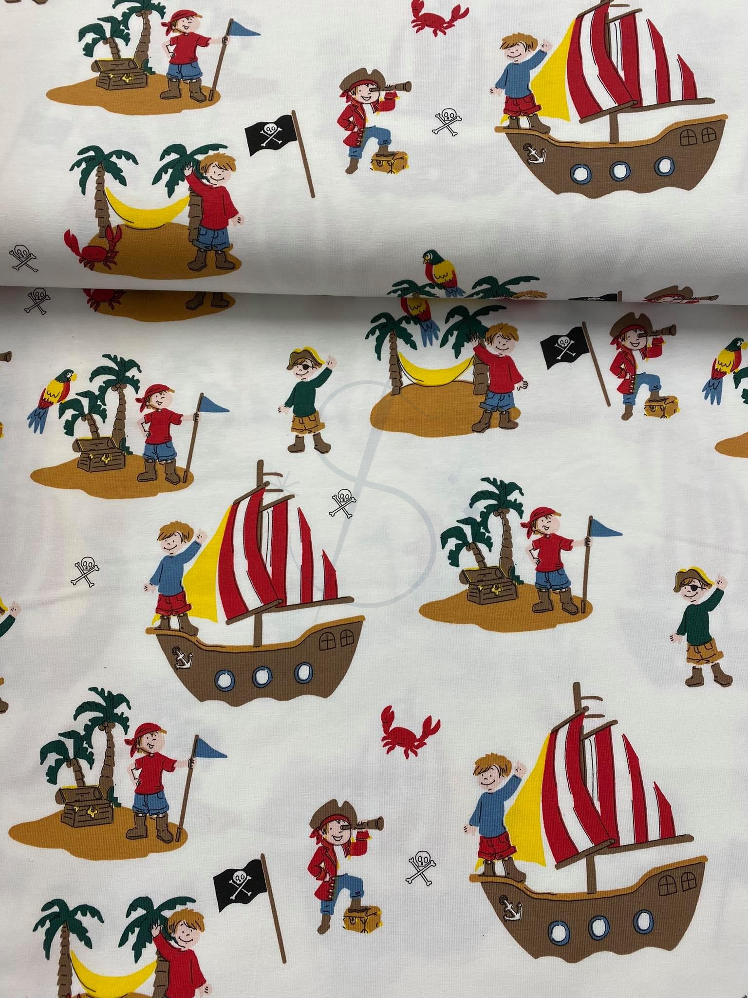 Piracka wyspa biała - Jersey bawełniany druk Jh2 MARINERO
