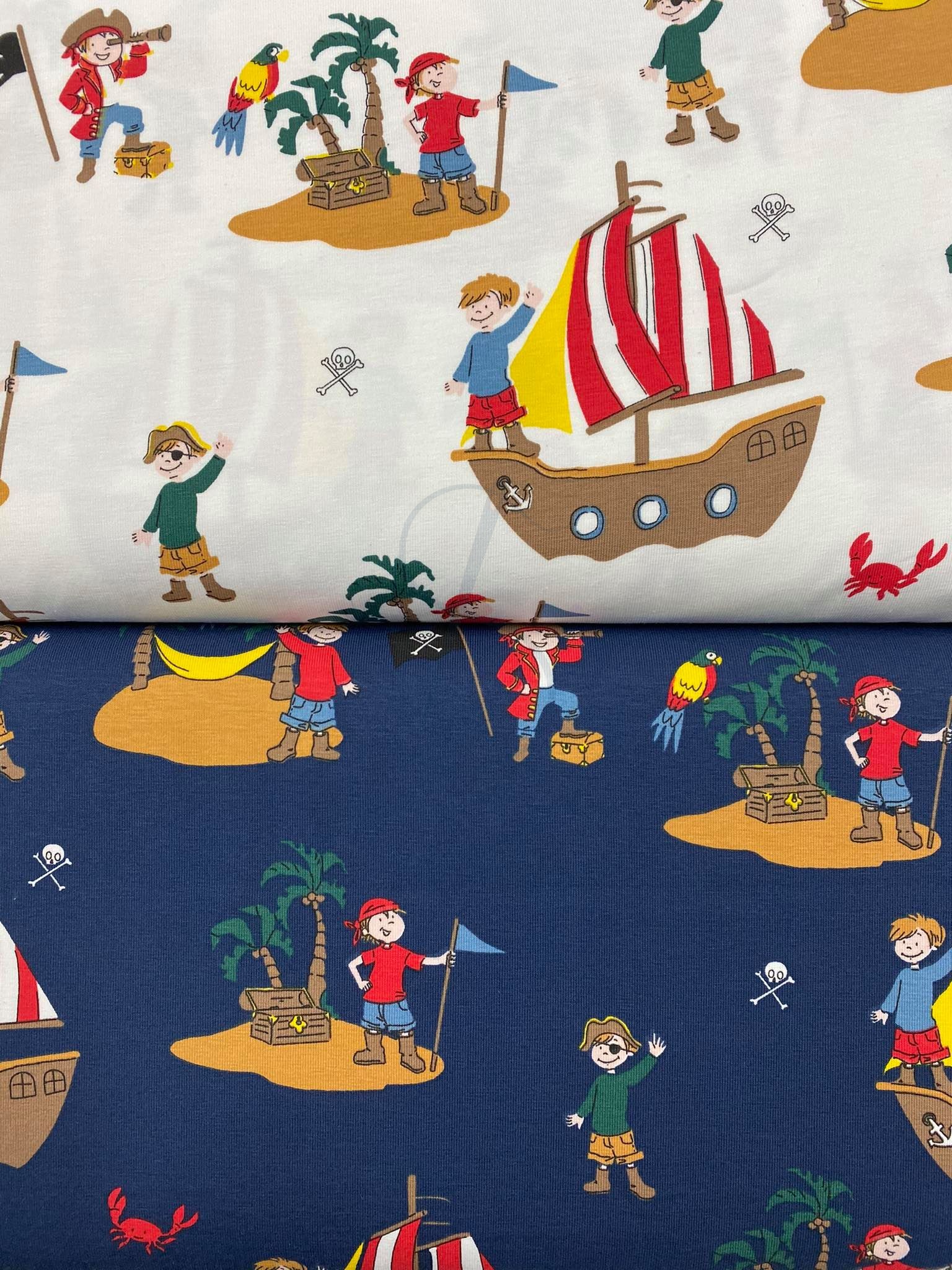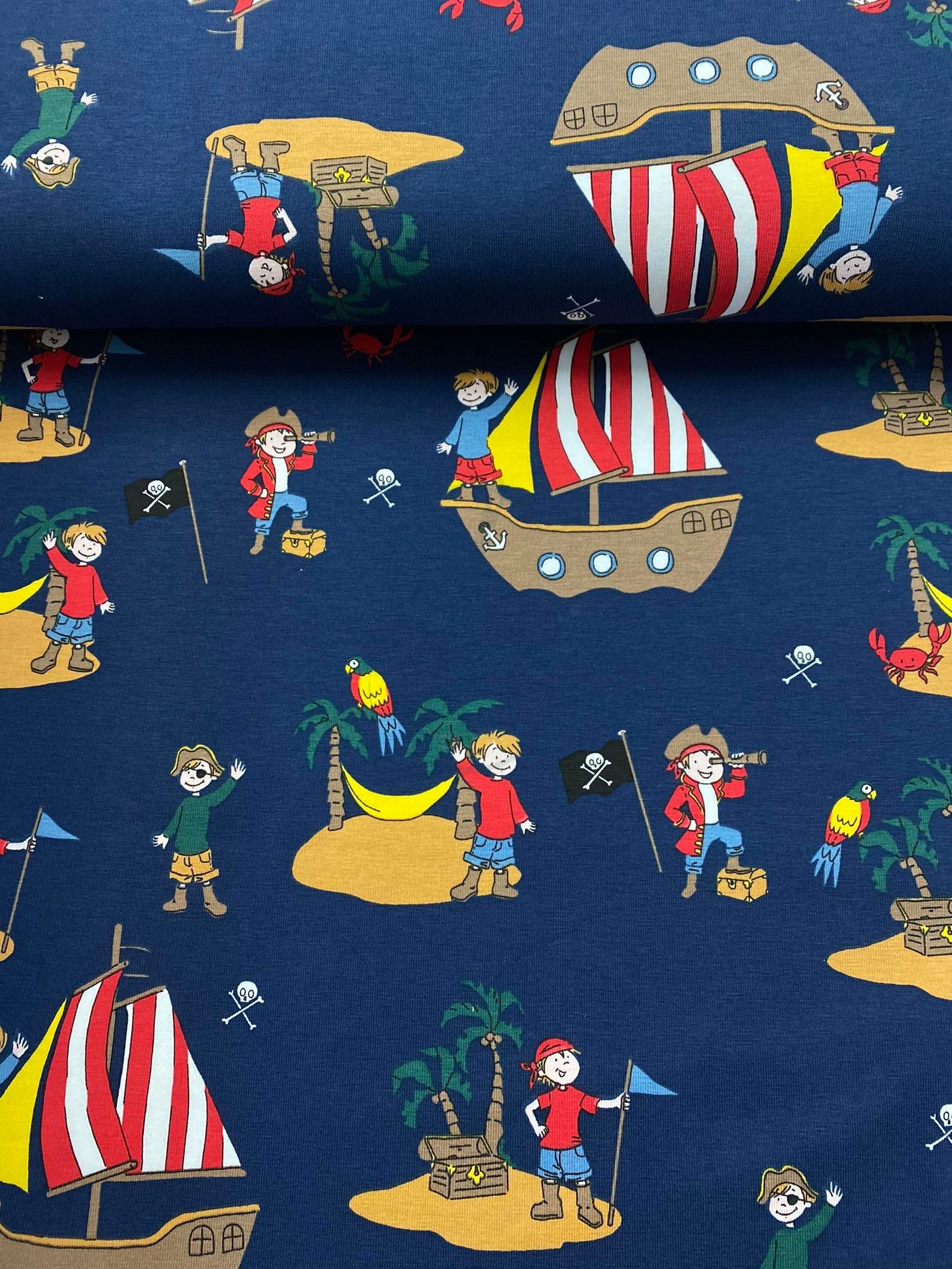 Piracka wyspa granat - Jersey bawełniany druk Jh2 MARINERO