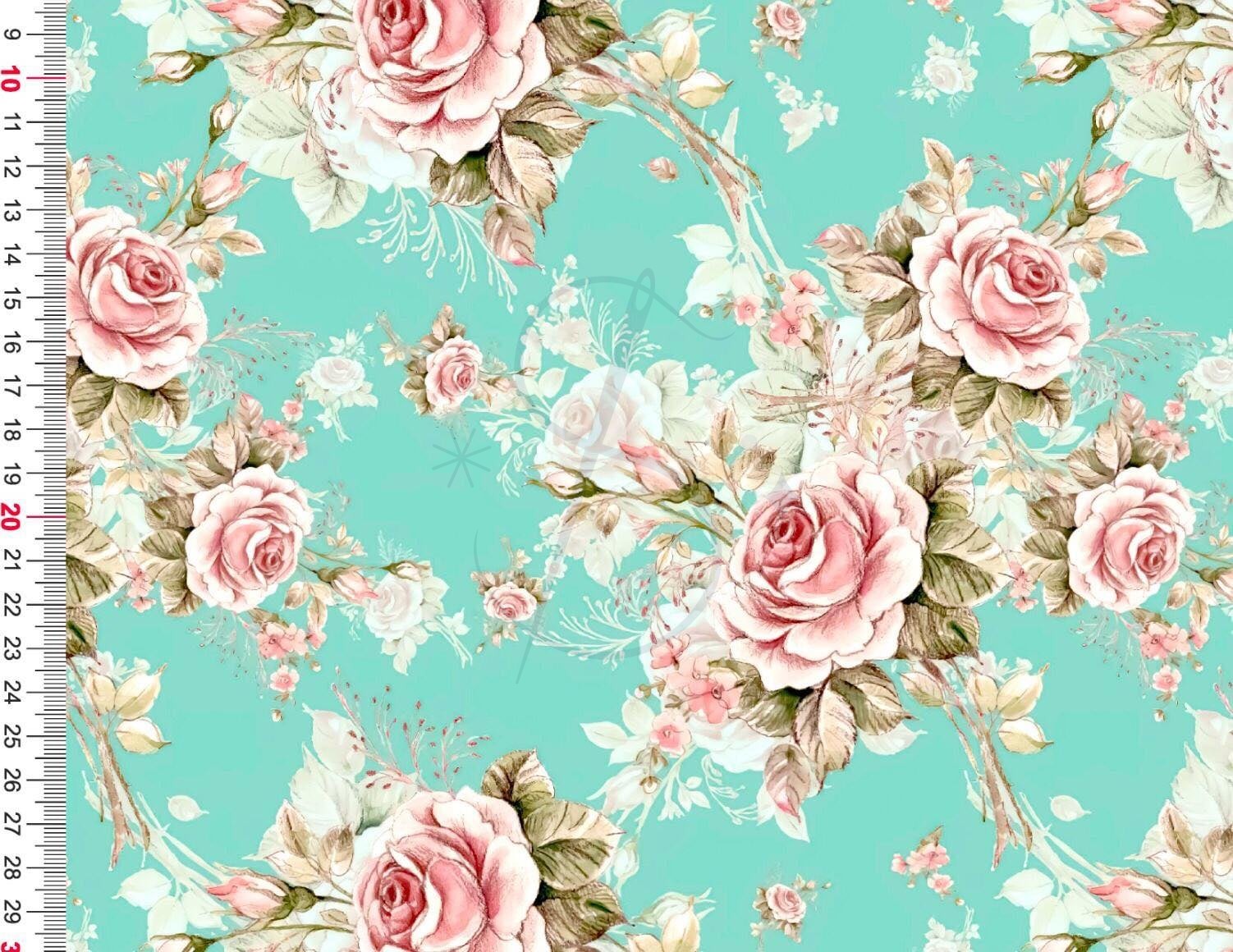 Róże na mięcie - Jersey druk cyfrowy J1 (1)
