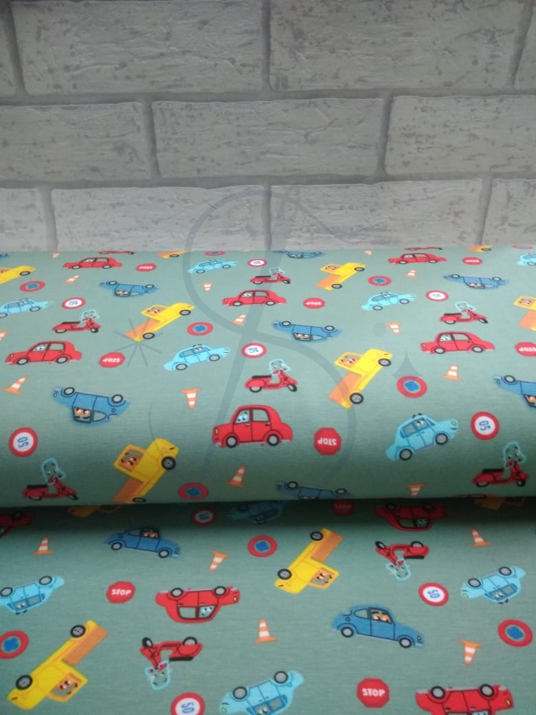 Samochodziki na brudnej mięcie - Jersey druk cyfrowy Jh2
