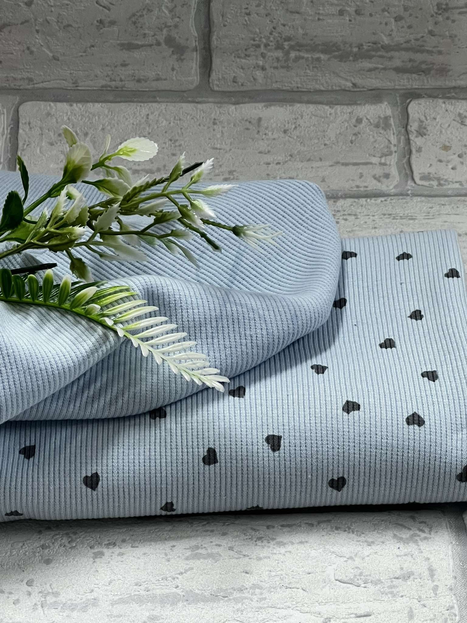 Ściągacz prążek serduszka baby blue - szer 120