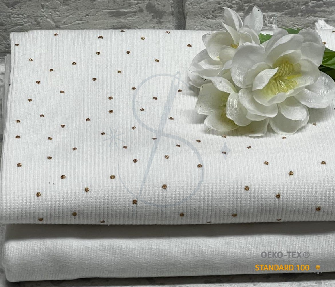 Ściągacz prążek złote kropeczki ecru - szer 120