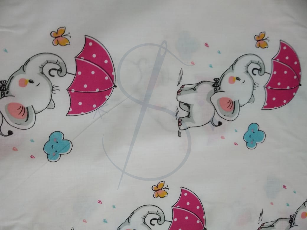 Słonik z parasolką (różową) - tkanina bawełniana
