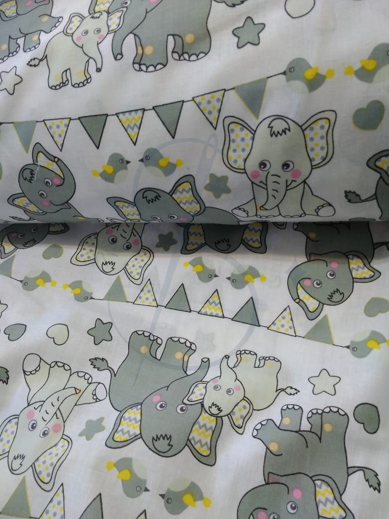Słoniki z żółtym zygzaczkiem - tkanina bawełniana