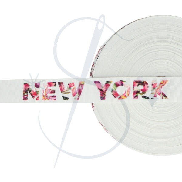Taśma lampasowa biała kwiaty " NEW YORK " 30mm szer
