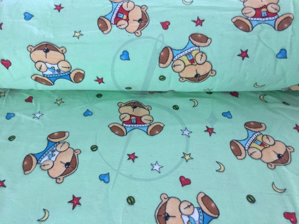 Zielone misie - tkanina flanelowa